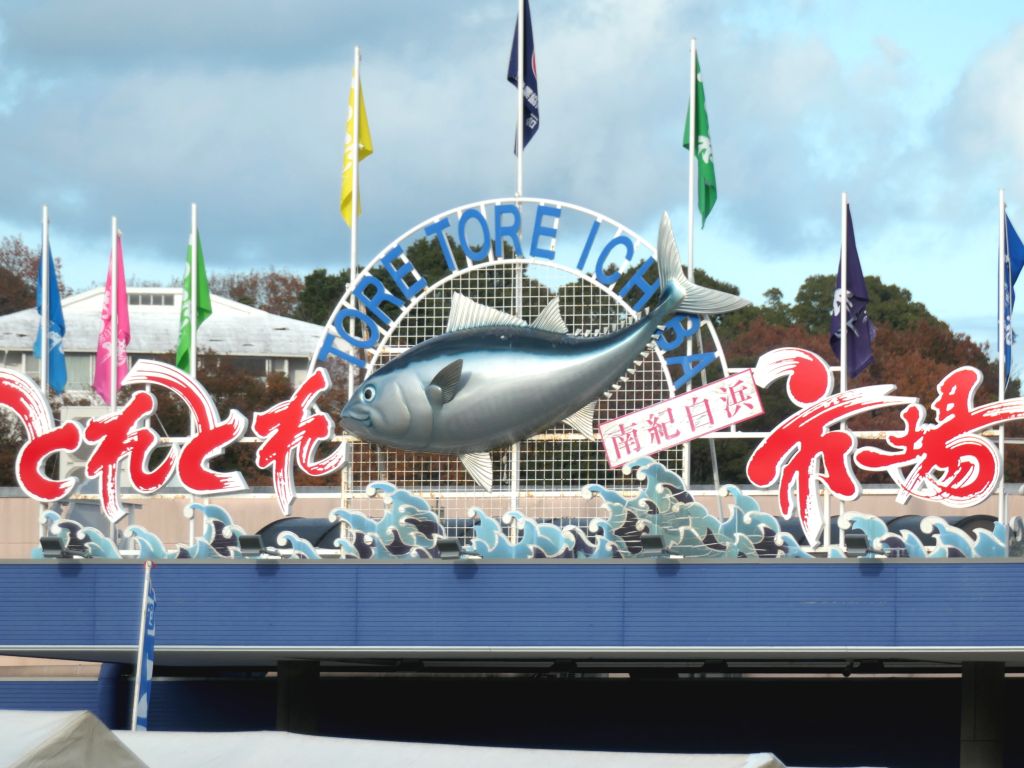 𝄆 和歌山の鰹 𝄇 すさみ町をはじめとする和歌山県南部は、初鰹を曳き釣りするケンケン漁で知られる。 No.785 鰹 【かつお】 種類特産物 場所とれとれ市場 地域和歌山県白浜町 国日本 訪問日令和7年12月20日 鰹像が付いた看板 市町村名・場所名は、訪問時点のもの。
